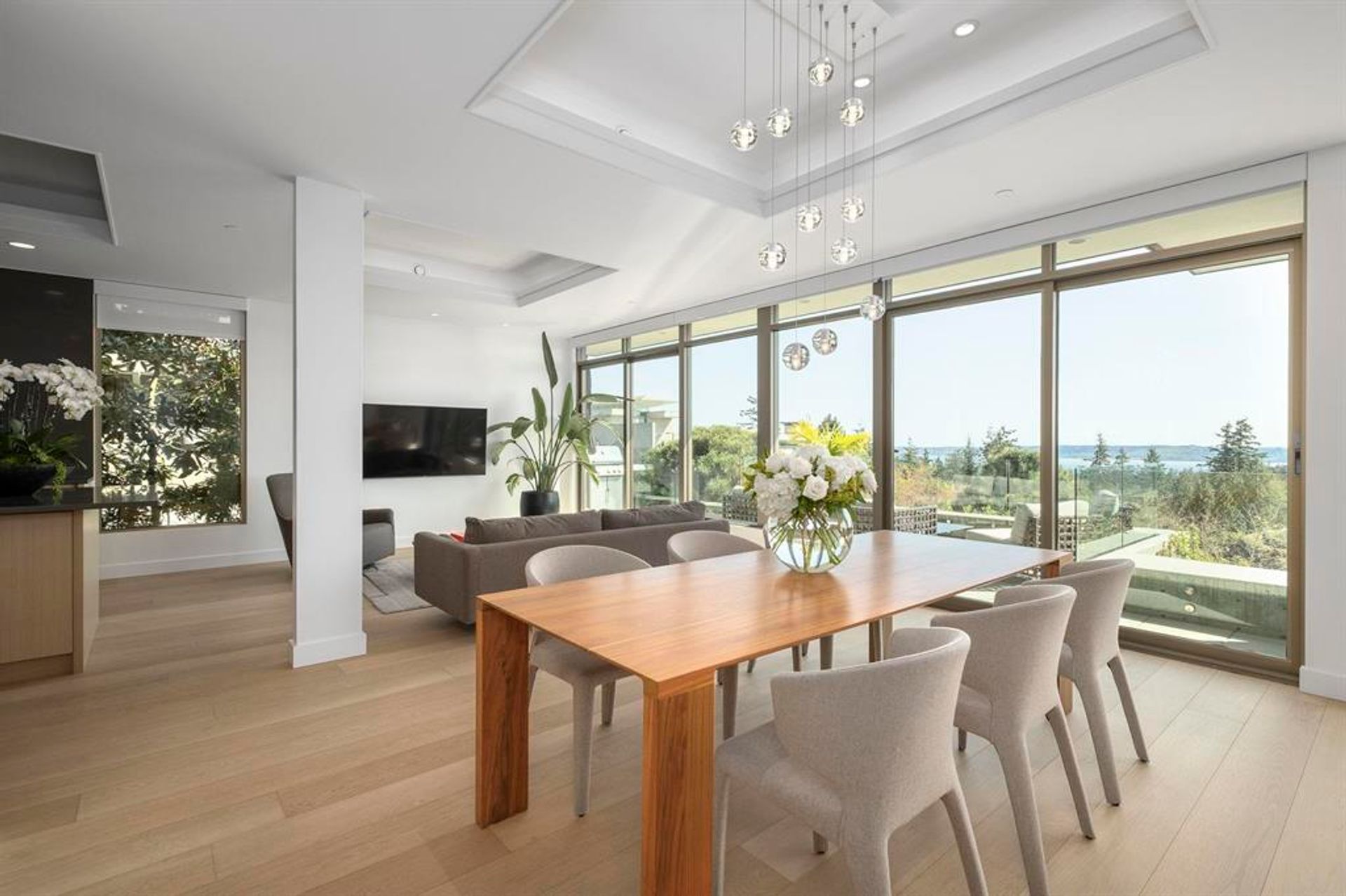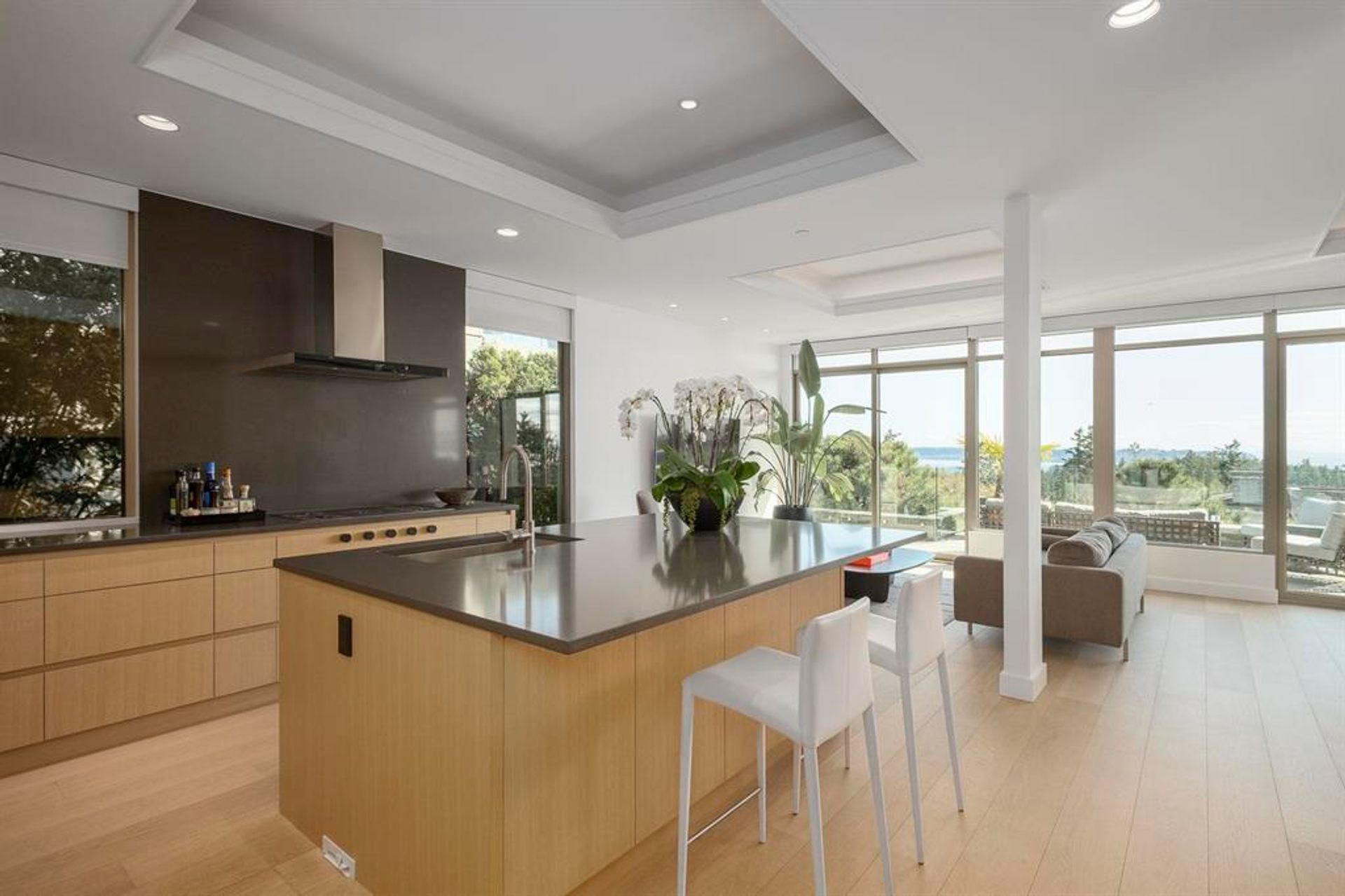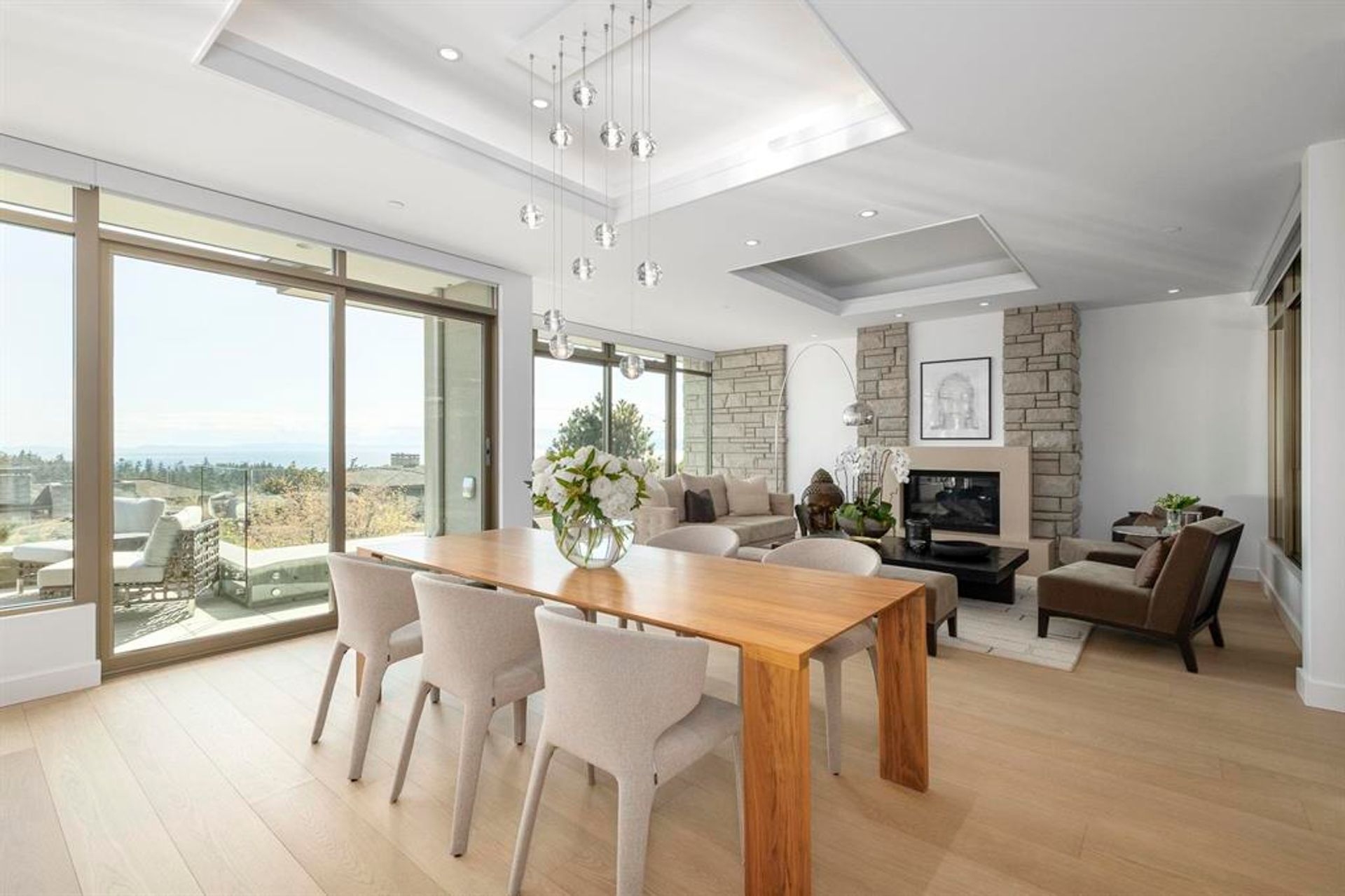 Welcome to Headland Park—an exclusive enclave of West Coast homes by Russell Hollingsworth. Recently renovated to the highest standards, this 3-bed, 3-bath home offers stunning ocean, city & island views. The open-concept seamlessly connects expansive living, dining & family room areas surrounded by floor-to-ceiling windows that fill the space with natural light, framing the ocean views & exterior landscape while opening to a south-facing patio—perfect for entertaining or quiet relaxation. A custom gourmet kitchen with Wolf & Sub-Zero appliances and large centre island anchors the main level. Upstairs, the primary bedroom impresses with fireplace, large W/I closet and a spa-like ensuite. Minutes to Caulfeild Centre, Caulfield Elementary, Rockridge School, Lighthouse Park & Stearman Beach.